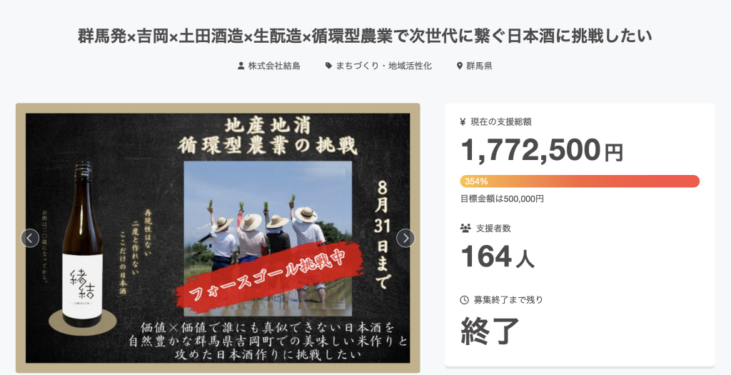 多くの方々からのご支援により、目標金額の354%の金額を達成することができました。